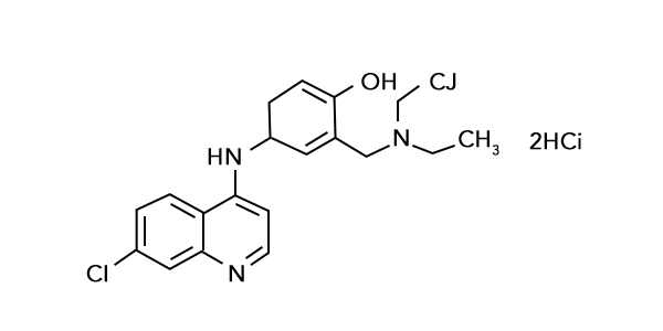 Amodiaquine HCL is an antimalarial drug from the 4-aminoquinoline class used to treat uncomplicated malaria caused by Plasmodium Falciparum, including some chloroquine resistant strains. It works by preventing the malaria parasite from converting tpxic heme into a safe substance called hemozoin.